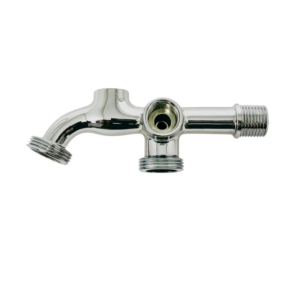Corpo de torneira de tanque com saída para máquina de lavar em zamac cromado