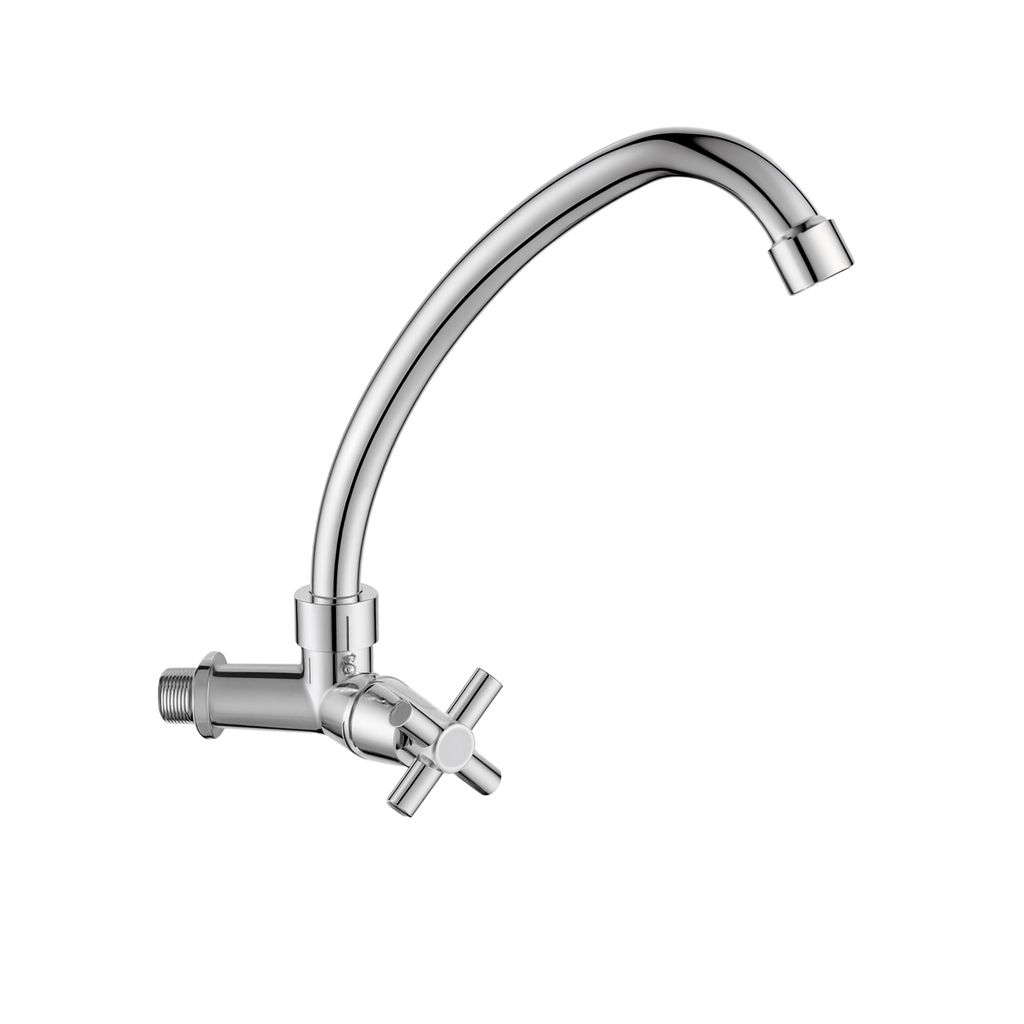 Torneira bica móvel 3/4' de parede em ABS cromada com cruzeta para cozinha