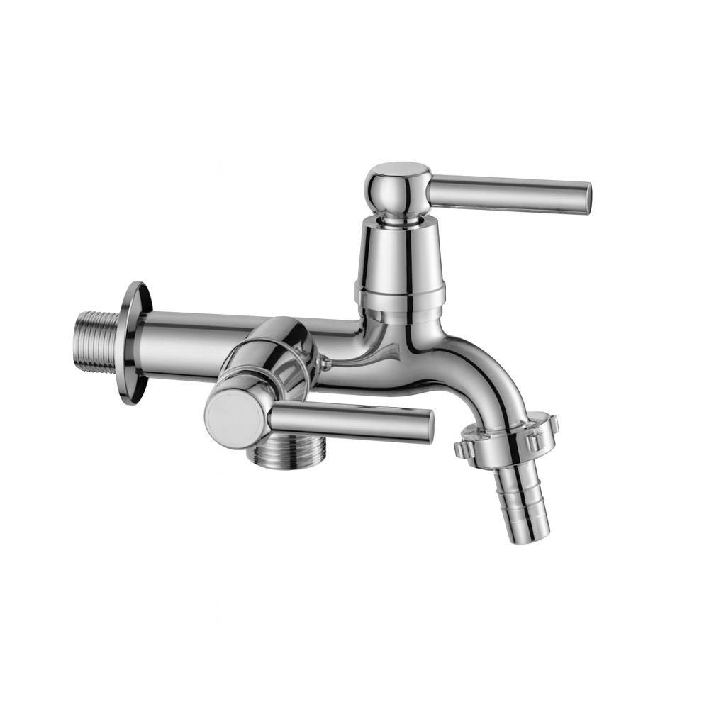 Torneira fixa de ABS cromada com alavanca para tanque com saída para máquina de lavar